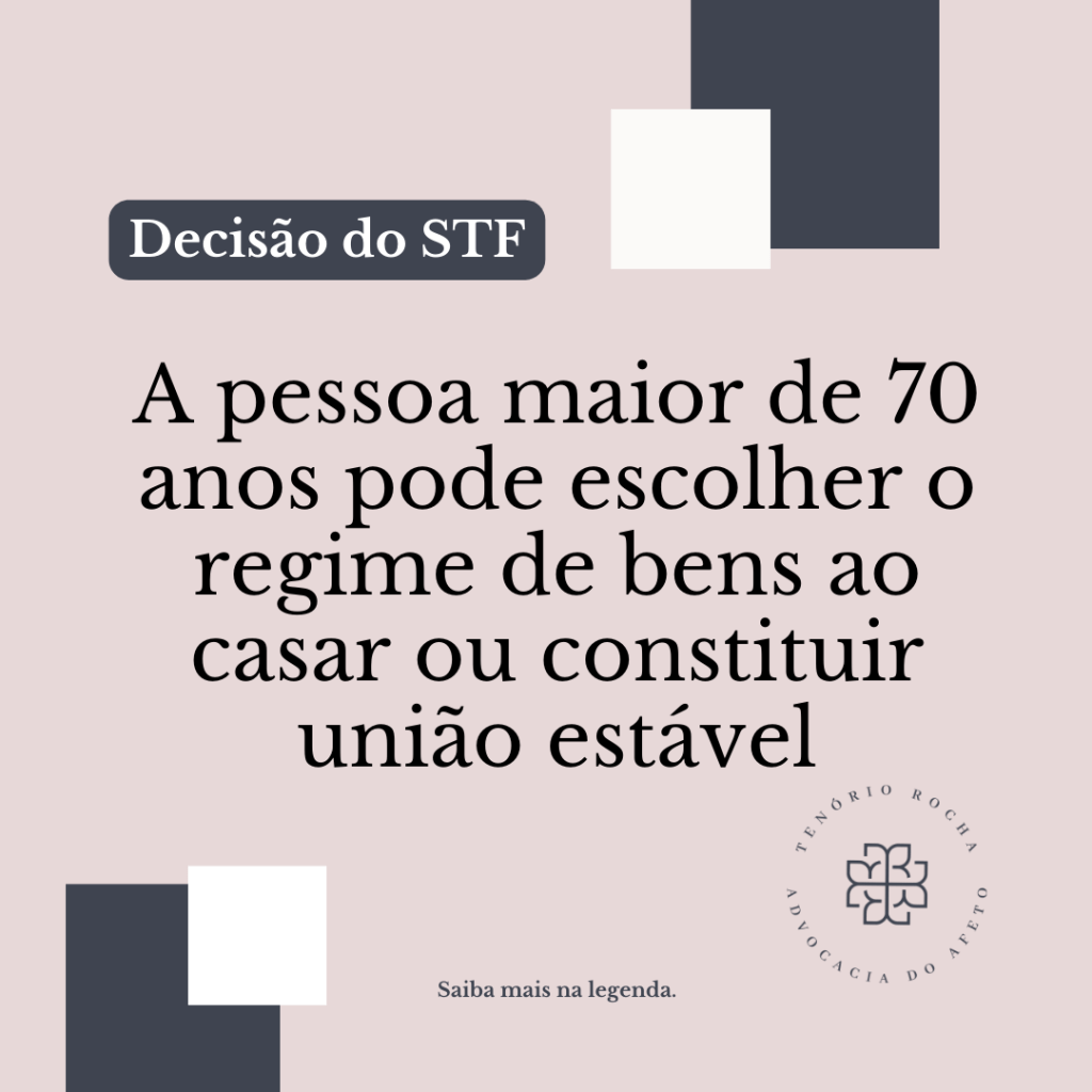 Com a decisão do STF, a pessoa maior de 70 anos, ao casar ou constituir união estável, poderá escolher o regime de bens de acordo com a sua vontade. ⠀